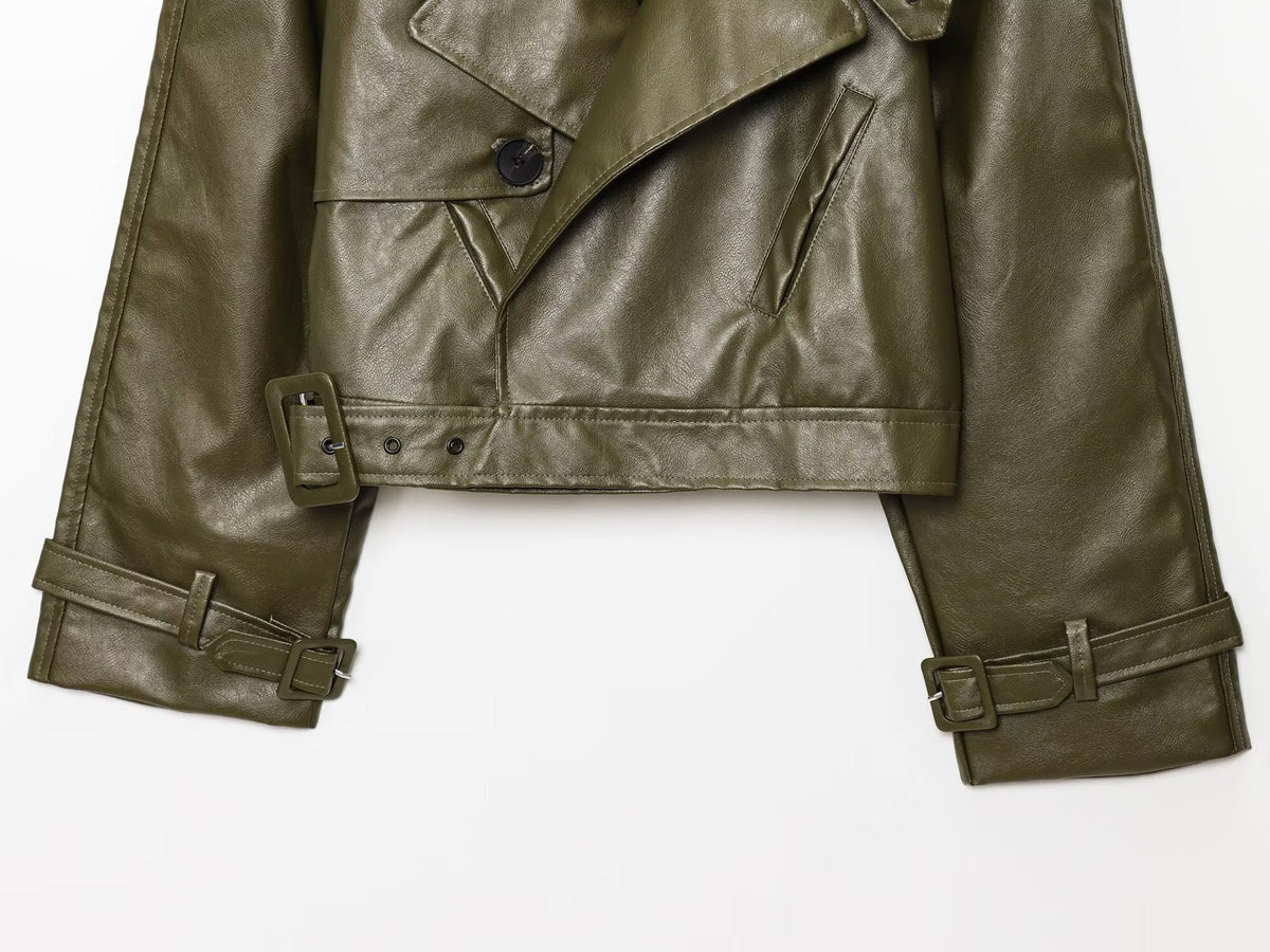 AMIRA – Kurze Motorradjacke aus PU-Leder in Grün