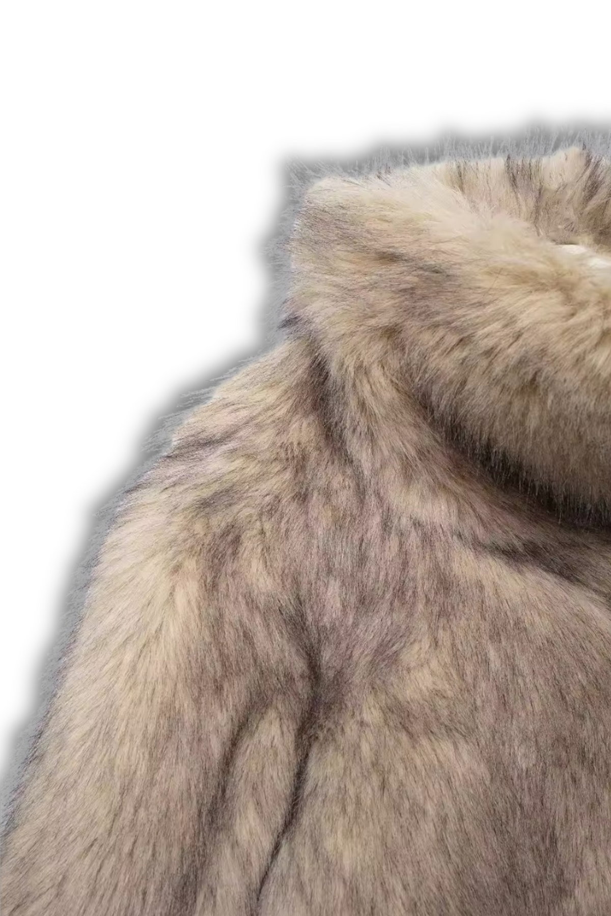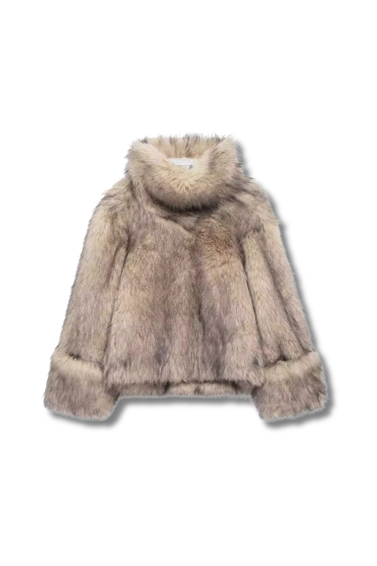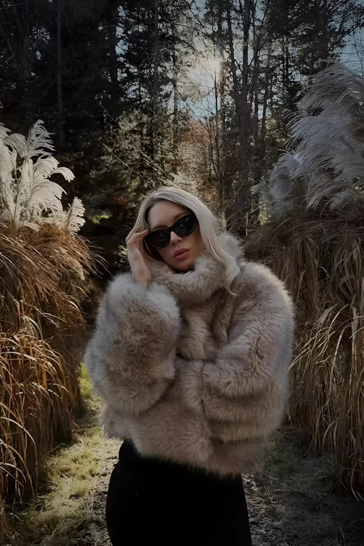 The FABIENNE sweatshirt in a luxurious fur look is the perfect blend of comfort and high fashion. With its elegant stand-up collar and trendy faux fur texture, this top adds an exclusive touch to your outfit. The loose, cropped fit makes it a versatile must-have that can be worn both casually and for special occasions.